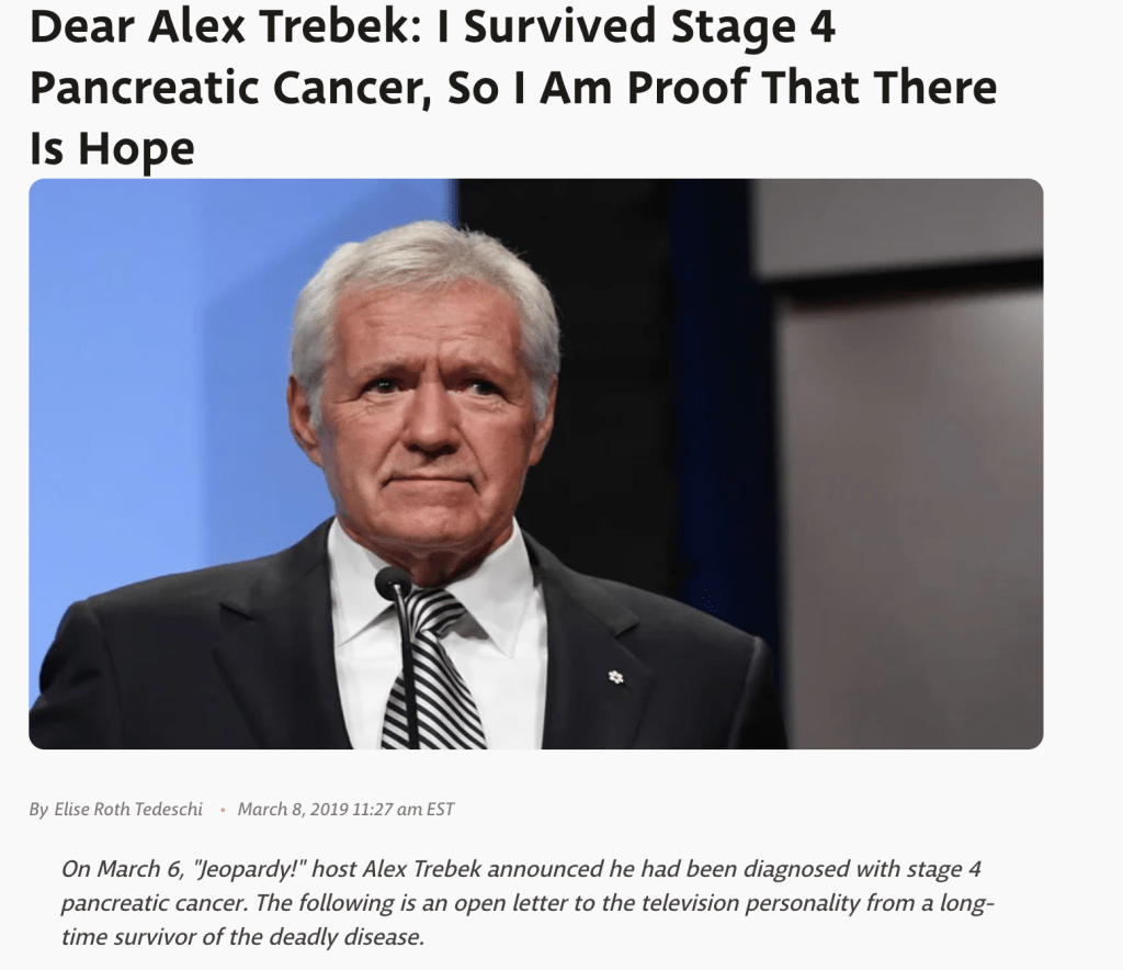 Commissioned and edited this viral open letter to Alex Trebek about cancer survival and resilience. The story gained wide traction and sparked meaningful conversation.